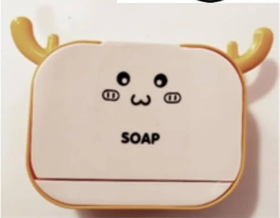 حافظ على الصابون جافًا بأسلوب كرتوني لطيف. صناديق بغطاء على شكل قرن وعل، بعضها مزود بخطافات قابلة للإزالة. مناسبة للحمام والسفر.