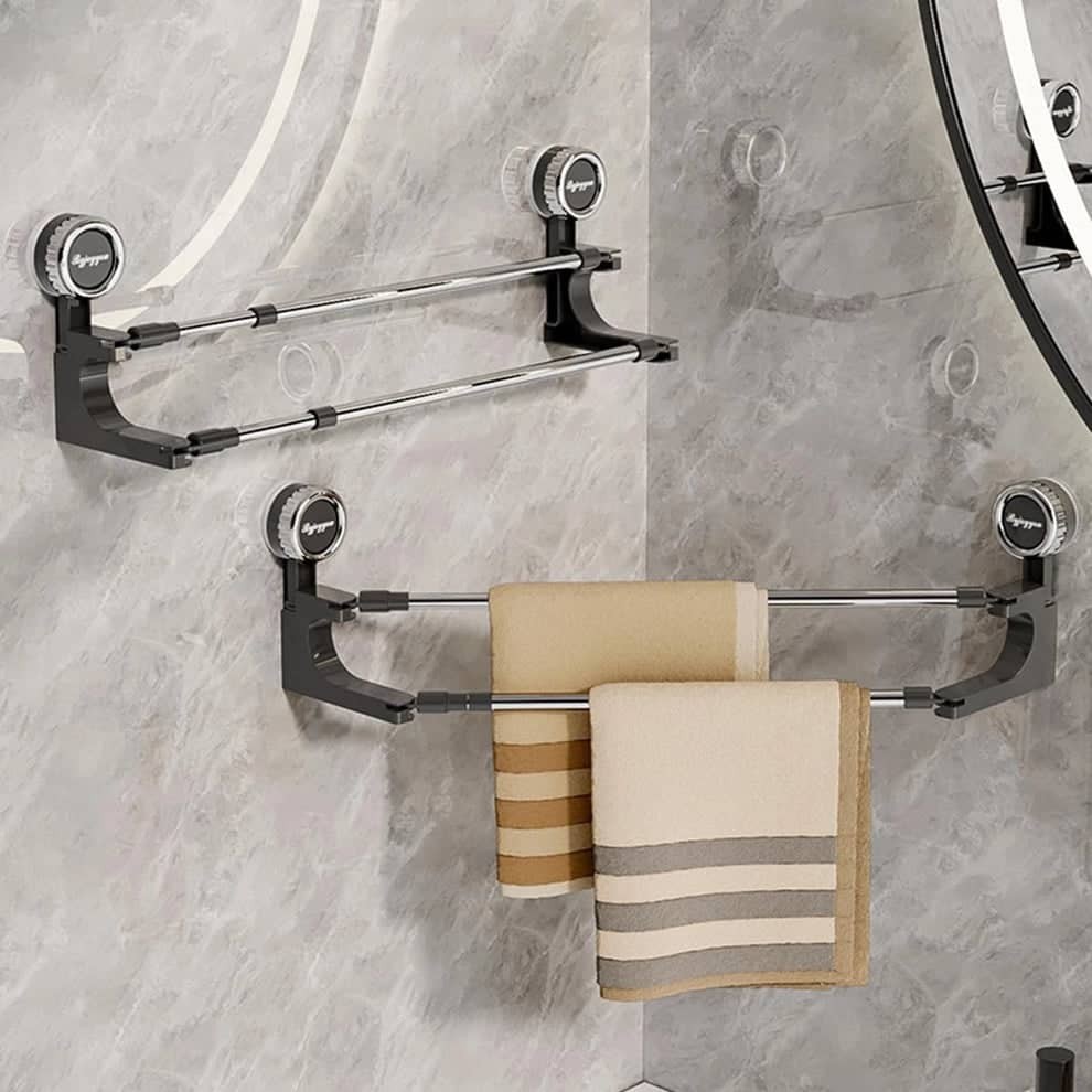 حامل مناشف مزدوج يتمدد حتى 90 سم، مضاد للصدأ ومناسب للاستخدام المتعدد في الحمام أو المطبخ.