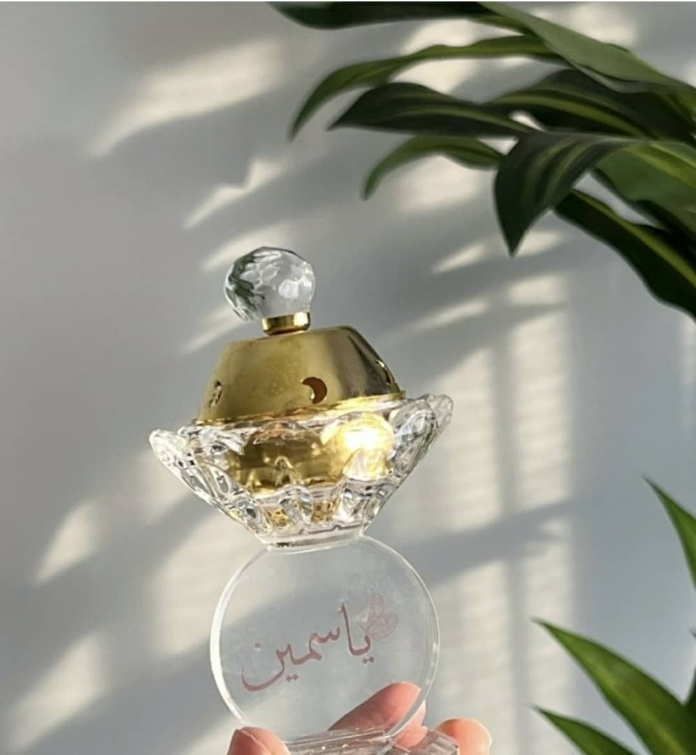 مبخرة راقية من الكريستال بغطاء ذهبي فاخر، يمكن نقش الاسم عليها، تضيف لمسة فخامة لمنزلك أو مكتبك.
