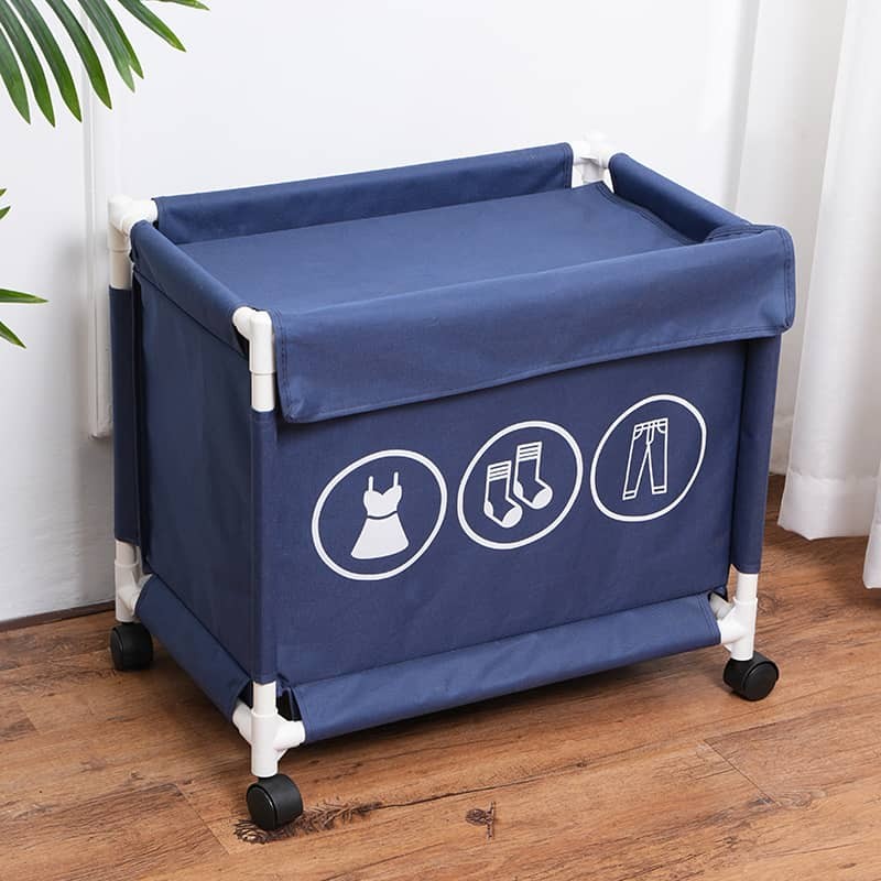 سلة غسيل مصنوعة من القماش مع عجلات لسهولة النقل. تصميم أنيق ومتين، بأبعاد 55×35×54 سم، توفر لك حل عملي لتخزين الغسيل.