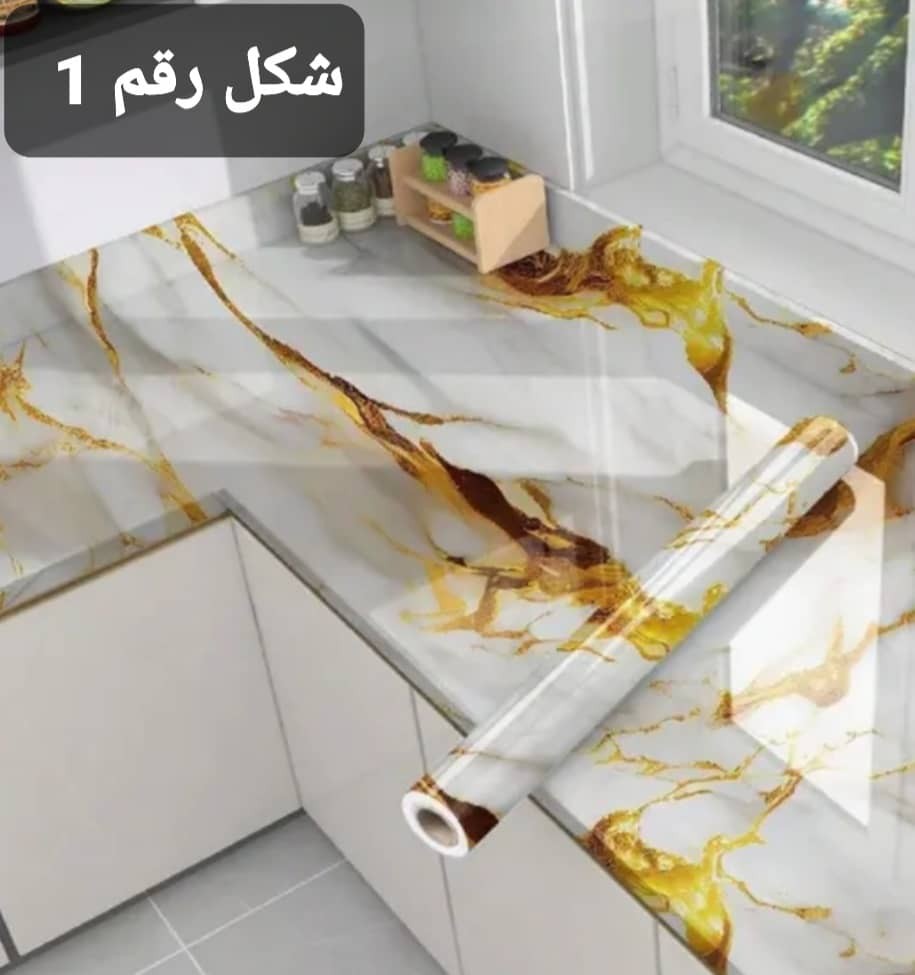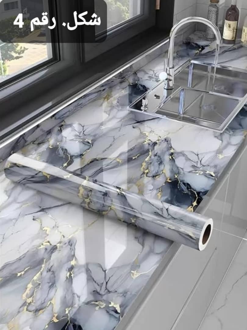 لاصق جداري بتصميم رخامي أنيق لتجديد الجدران والمطابخ بسهولة بدون دهان. مقاوم للماء وسهل التركيب والإزالة، مناسب للمطابخ والحمامات. يُعرف أيضاً باسم: ورق جدران، لاصق رخام، ديكور حائط.
