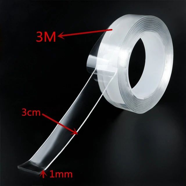 شريط لاصق شفاف مزدوج الوجهين بتقنية النانو يوفر قوة تثبيت عالية على مختلف الأسطح مثل الزجاج، البلاستيك، الخشب والمعادن.