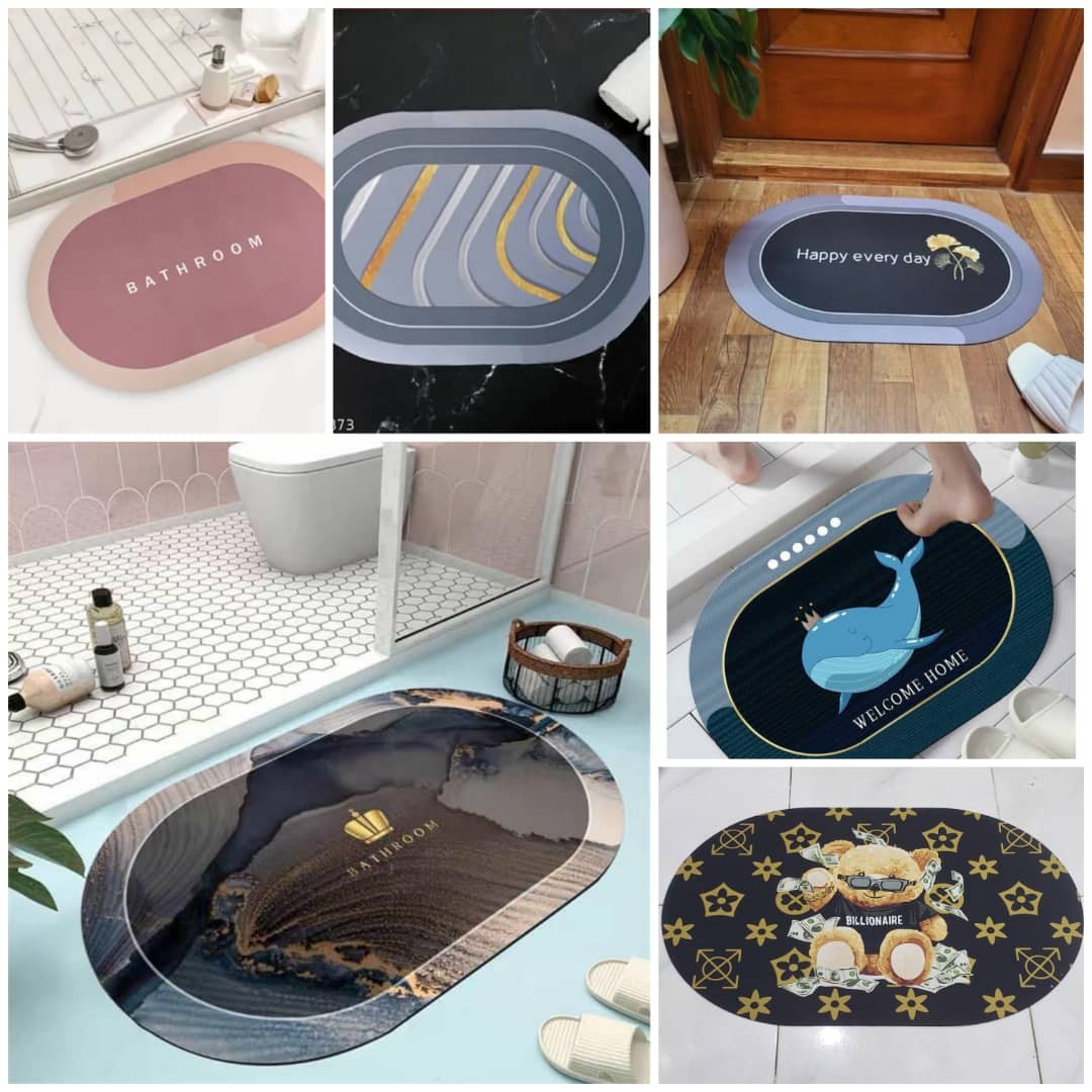 سجادة حمام بامتصاص عالي وثبات ممتاز، متوفرة بشكلين: مستطيل 43×73 أو بيضاوي 60×40. تمنع الانزلاق وتضيف راحة للحمام.
