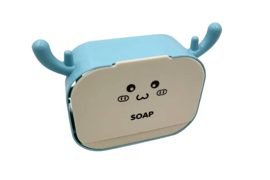 حافظ على الصابون جافًا بأسلوب كرتوني لطيف. صناديق بغطاء على شكل قرن وعل، بعضها مزود بخطافات قابلة للإزالة. مناسبة للحمام والسفر.